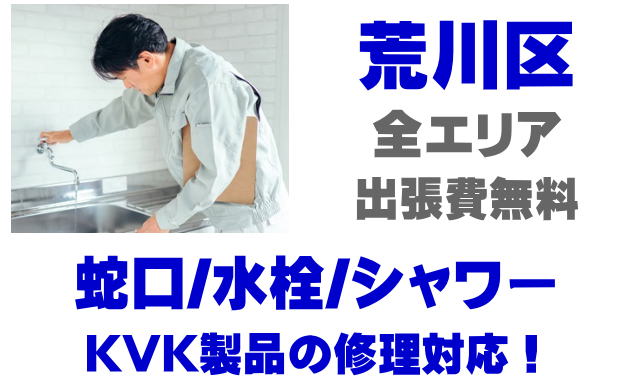 荒川区で水栓メーカーKVKの修理業者をお探しなら当社までお気軽にお問い合わせください。蛇口の水漏れ、シャワーの故障などKVK製に関するトラブルなら何でもご相談ください。